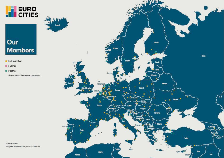 Merkezi Brüksel’de bulunan ve 1986 yılında kurulan EUROCITIES, büyük ölçekli Avrupa şehirlerini ve yerel yönetimlerini bir araya getiren, Avrupa şehirlerinin ortak politika geliştirme, bilgi ve deneyim paylaşımı ile iş birliğini güçlendirme amacıyla faaliyet gösteren köklü ve saygın bir ağ olarak öne çıkıyor.