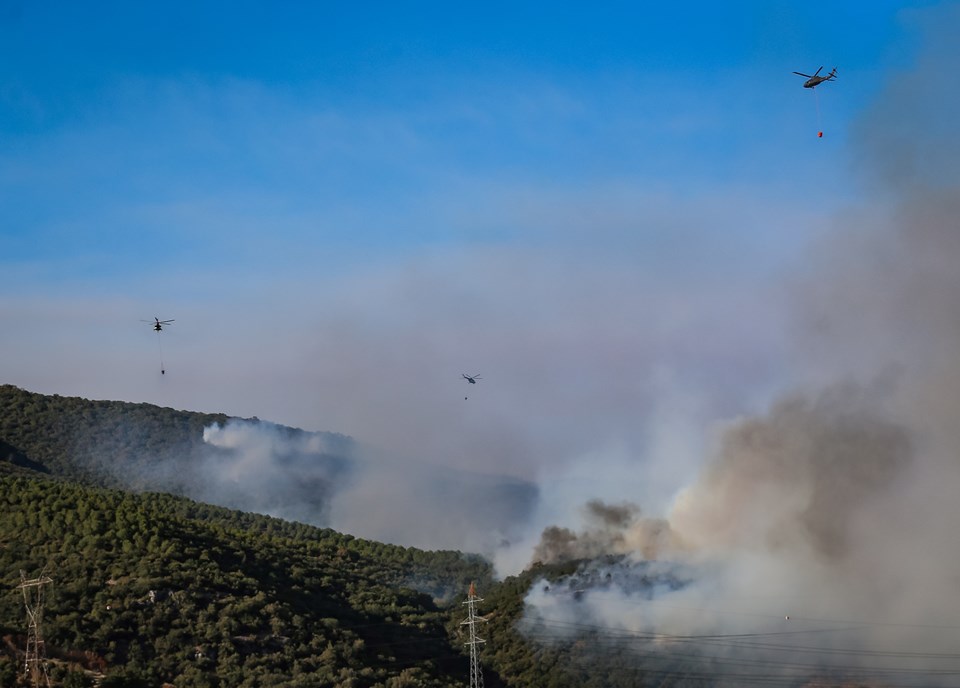 Yangının kontrol altına alınması için ekiplerin havadan ve karadan müdahalesi sürüyor.