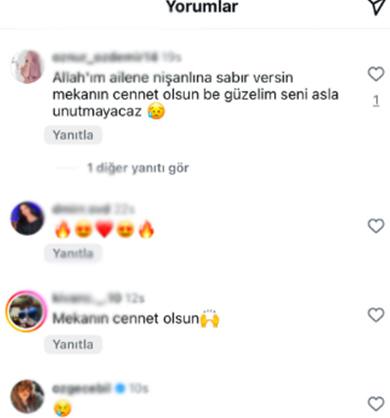 Sevenleri, Özcan’ın sosyal medya hesabındaki paylaşımlarına yorum yaparak acılarını ifade etti.