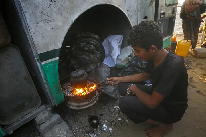 İsrail saldırılarından kaçarak Deyr Belah’a sığınan Filistinli aileler, zor şartlar altında yaşamlarını sürdürüyor
