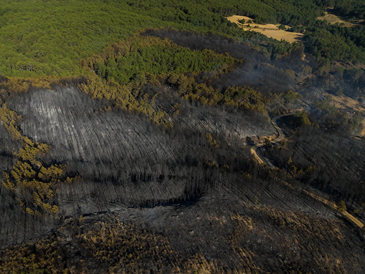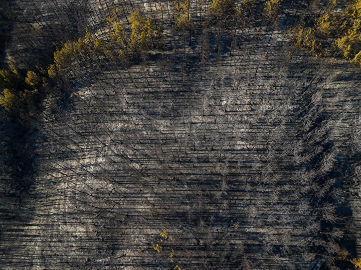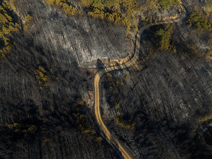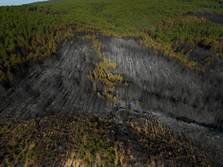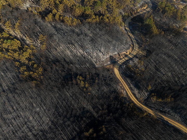 Öte yandan yanan alanlar havadan dron ile görüntülendi.